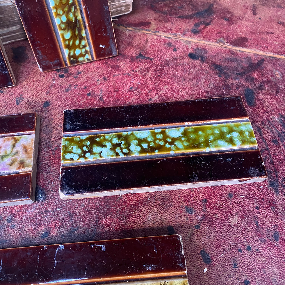 Antique Majolica Tin Plate Glaze Brown Shell Embossed Metro Style Tile Set of 5
